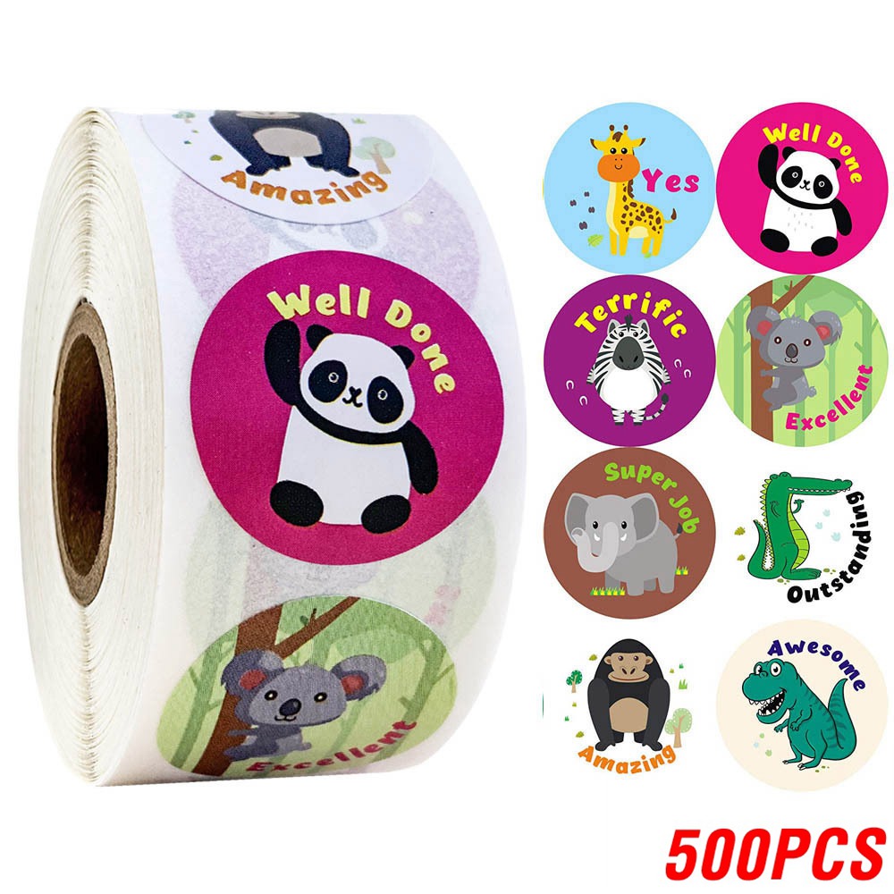 100-500pcs Spanish Reward Stickers Encouragement Sticker Roll For Kids Motivational Stickers With Cute Animals For Students