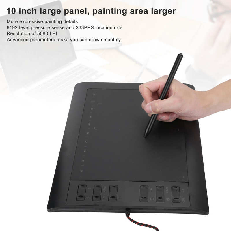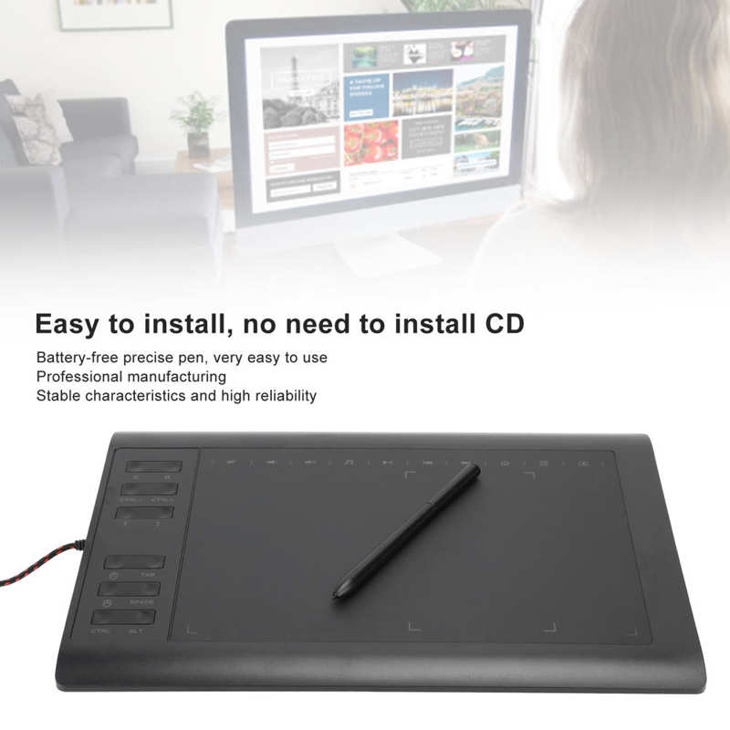 10x6 Inch Graphic Drawing Tablet 8192 Level Digitizing Painting Board No Need Charge Pen