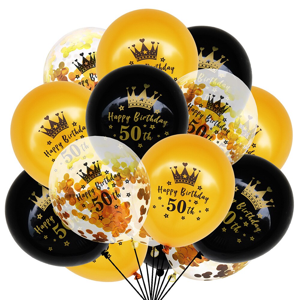 15pcs/set Black Gold Latex Balloons 18 30 50 Happy Birthday Party Confetti Balloons Adult Birthday Ballons Decorations Supplies