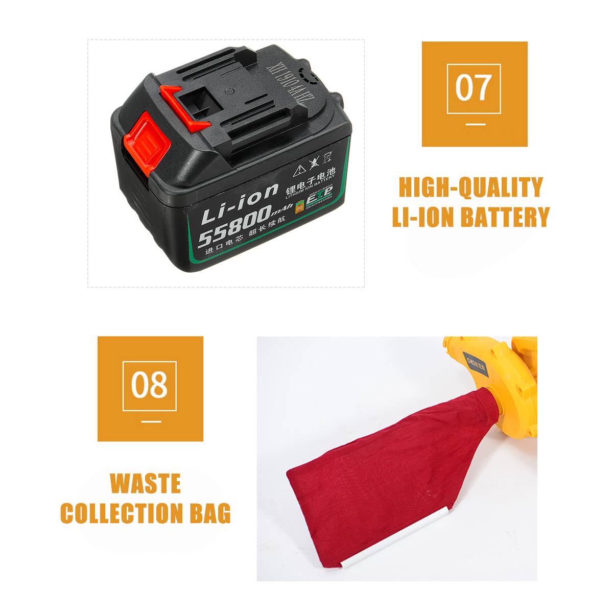 2 In 1 Rechargeable Cordless Electric Air Blower & Suction 75800mah Li Battery Handheld Leaf Dust Collector Cleaner Garden Tools