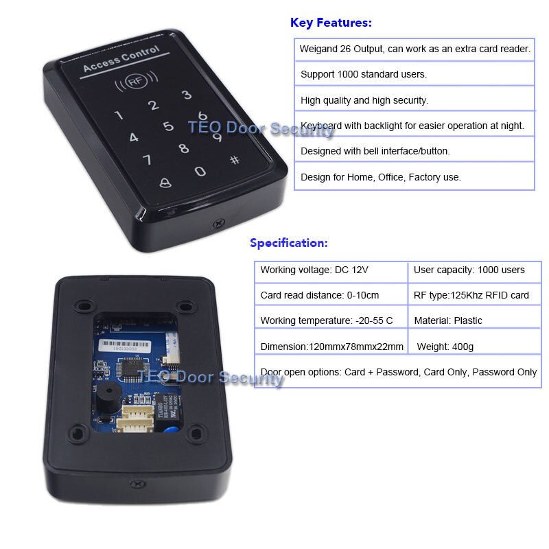 2000Users Keypad Entry System Access Control system Touch Screen for Single Door Control ID card Reader