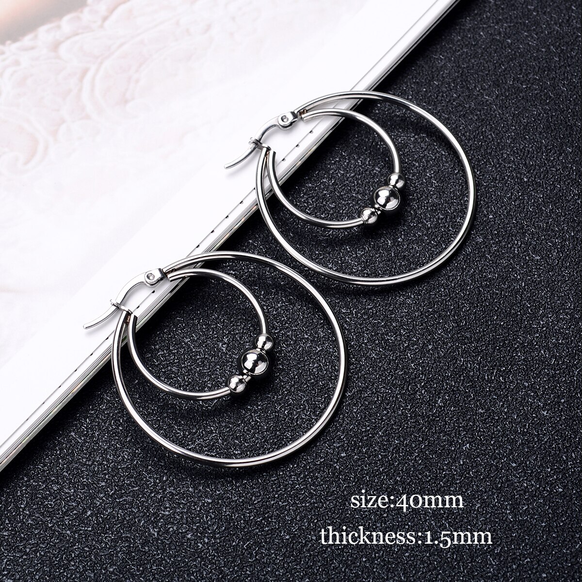 316l Stainless Steel Earrings Hoops With Ball Earing Double Layer Different Circle Round Gold Big Large Thick Hoop Earring