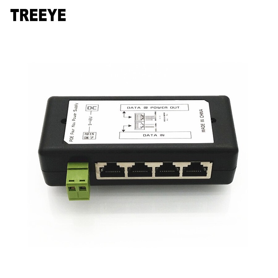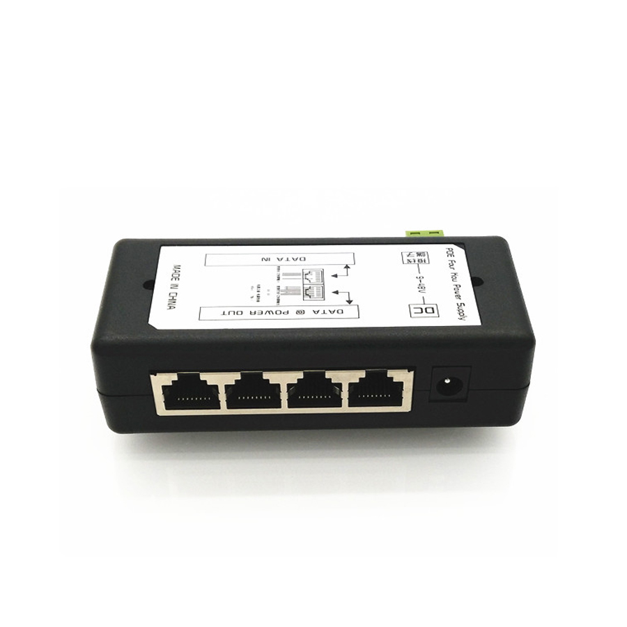 4 Port PoE Injector 4CH PoE Power Adapter Ethernet Power Supply Pin 4,5(+)/7,8(-) Input DC12V-DC48V for IP Camera