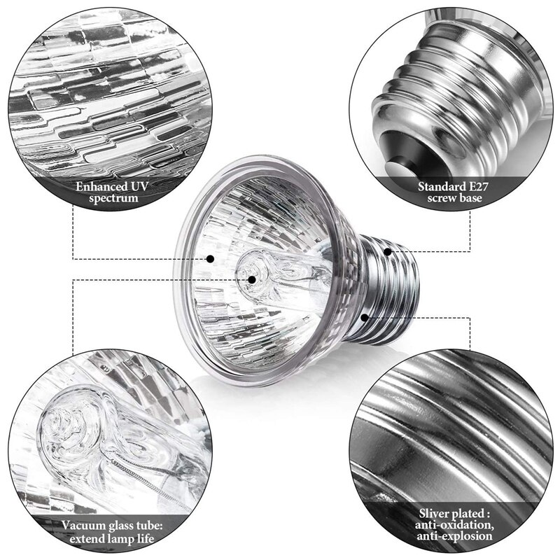 50W UVB Bulb UVA Light Halogen Basking Bulb Reptilian Lamp Lizard Lamp E27 Lamp Spot Lamp Full Spectrum Sun Lamp