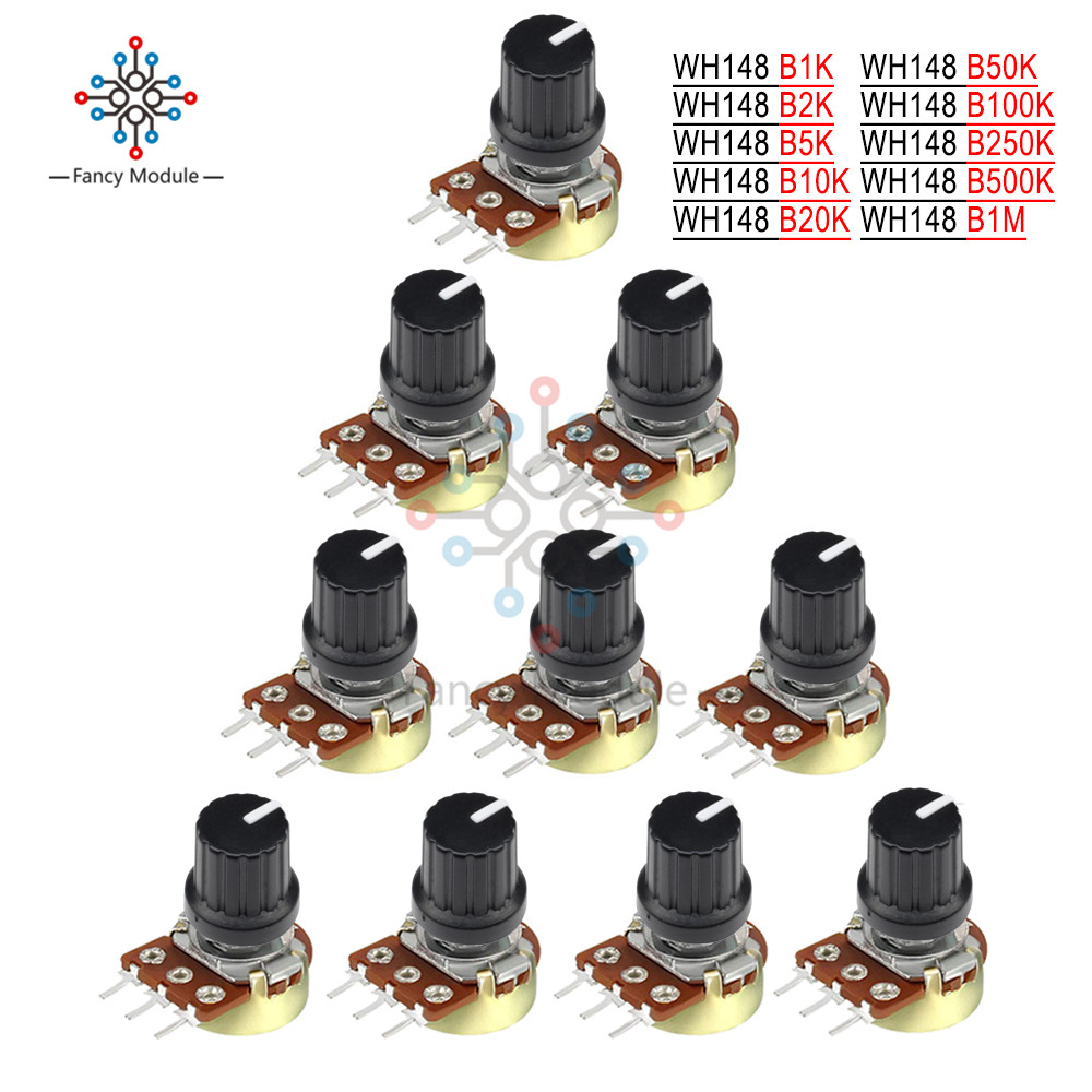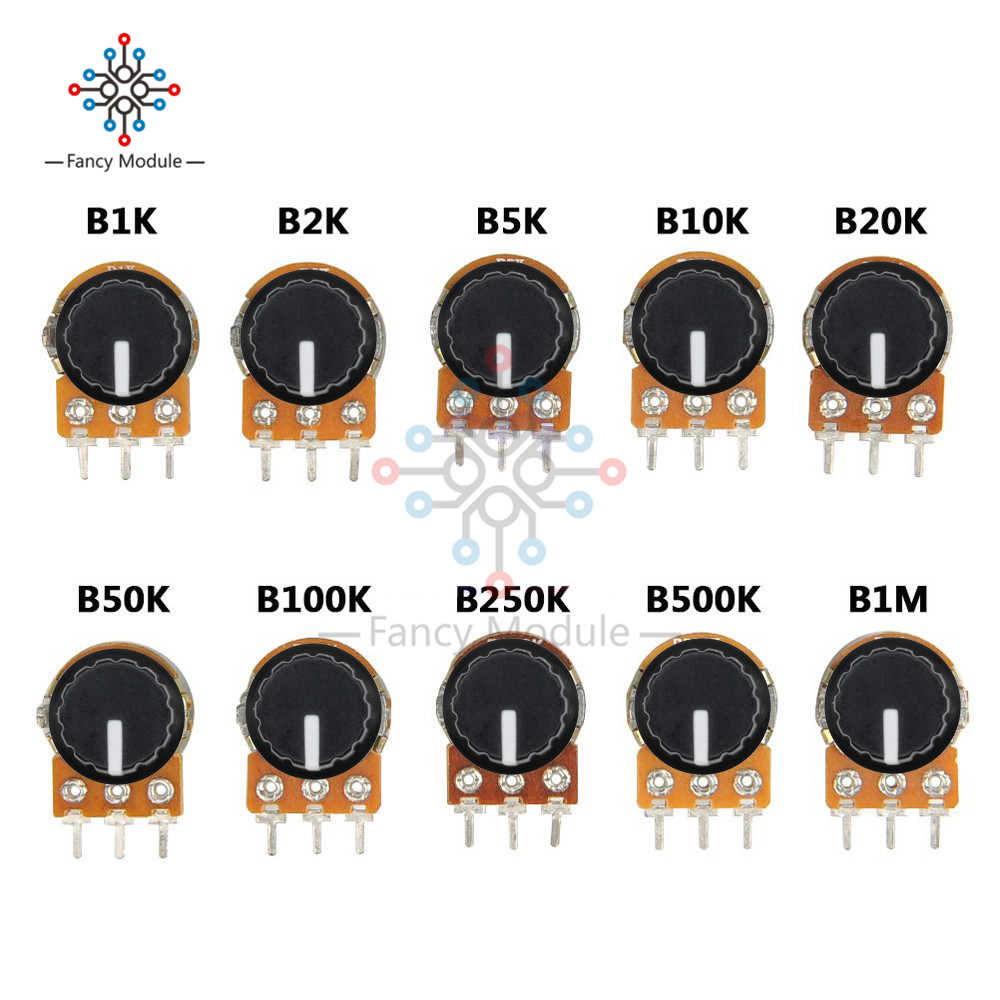 5PCS/Lot Potentiometer Resistor 1K 5K 10K 20K 50K 100K 500K 1MOhm 3 Pin Linear Taper Rotary Potentiometer for Arduino with Cap
