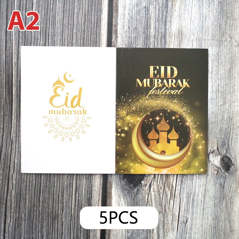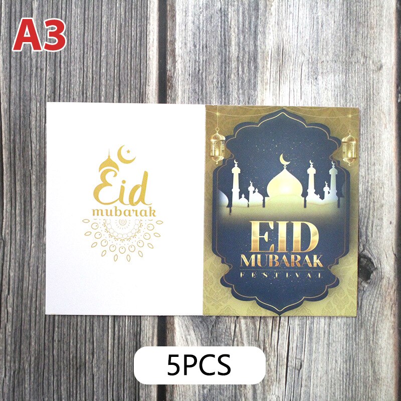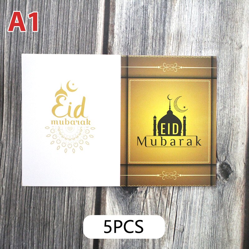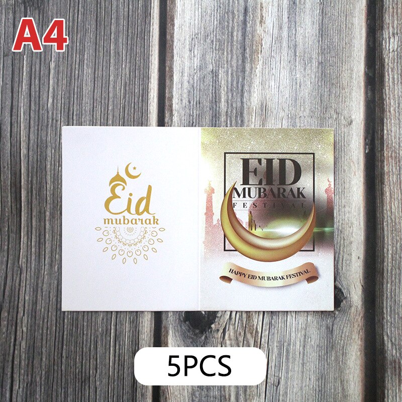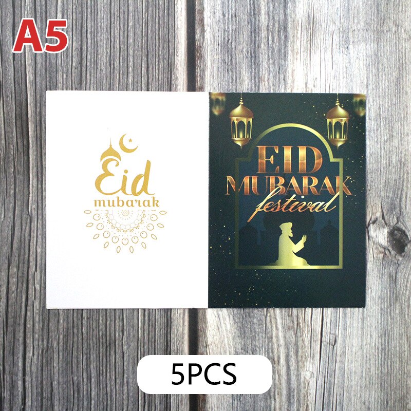 5pcs/set EID MUBARAK Greeting Card Muslim Eid Mubarak Ramadan Blessing Card Ramadan Decoration Festival Card Wish Card
