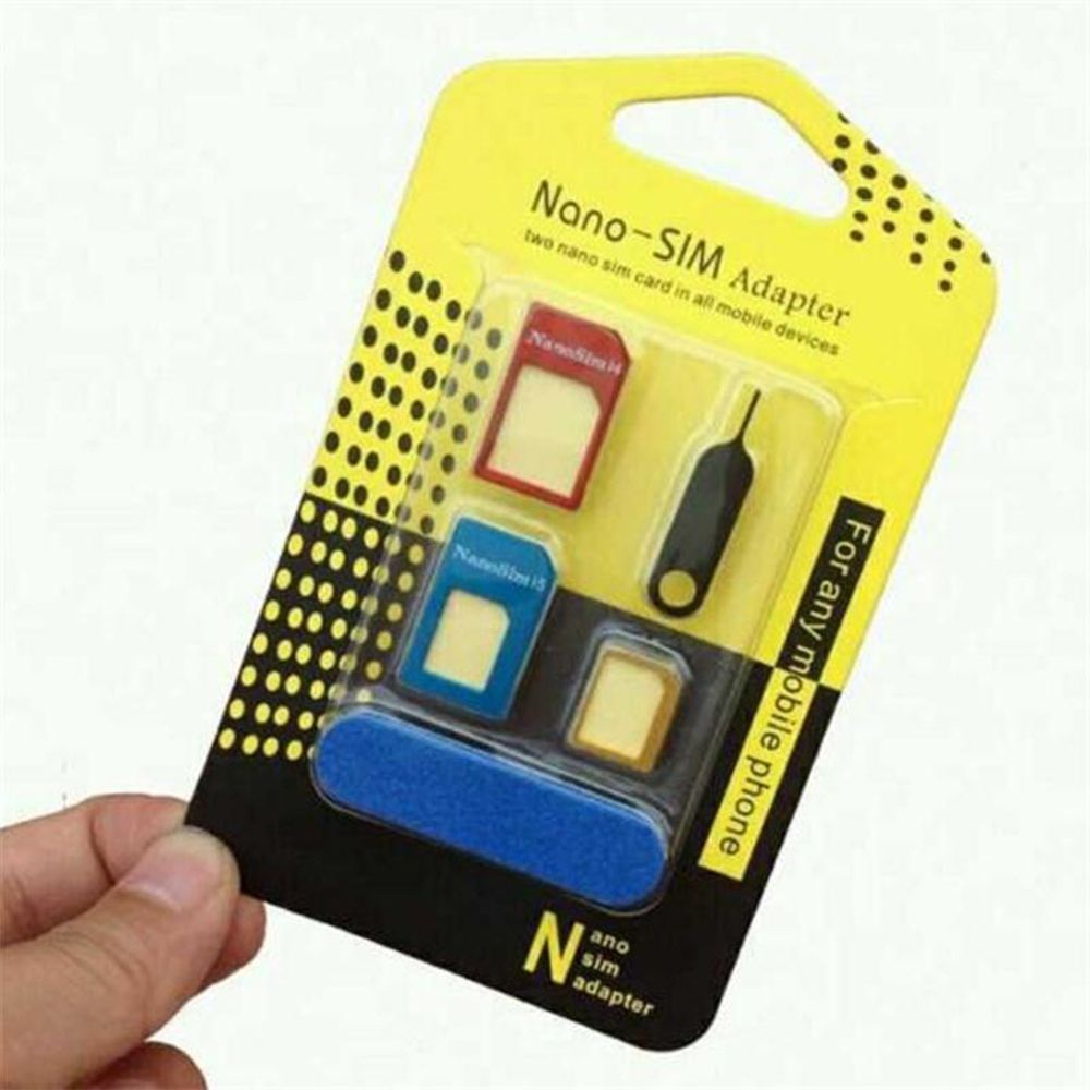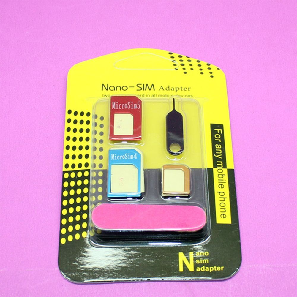 5pcs/set Nano Sim Card Adapters + Regular & Micro Sim + Standard SIM Card Tools For iPhone 4 4S 5 5c 5s 6 6s Retail Box