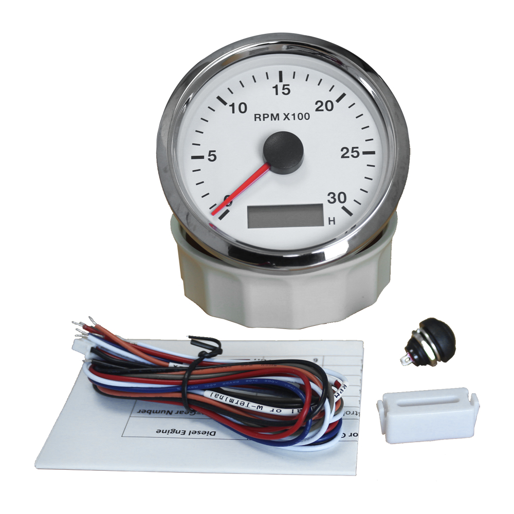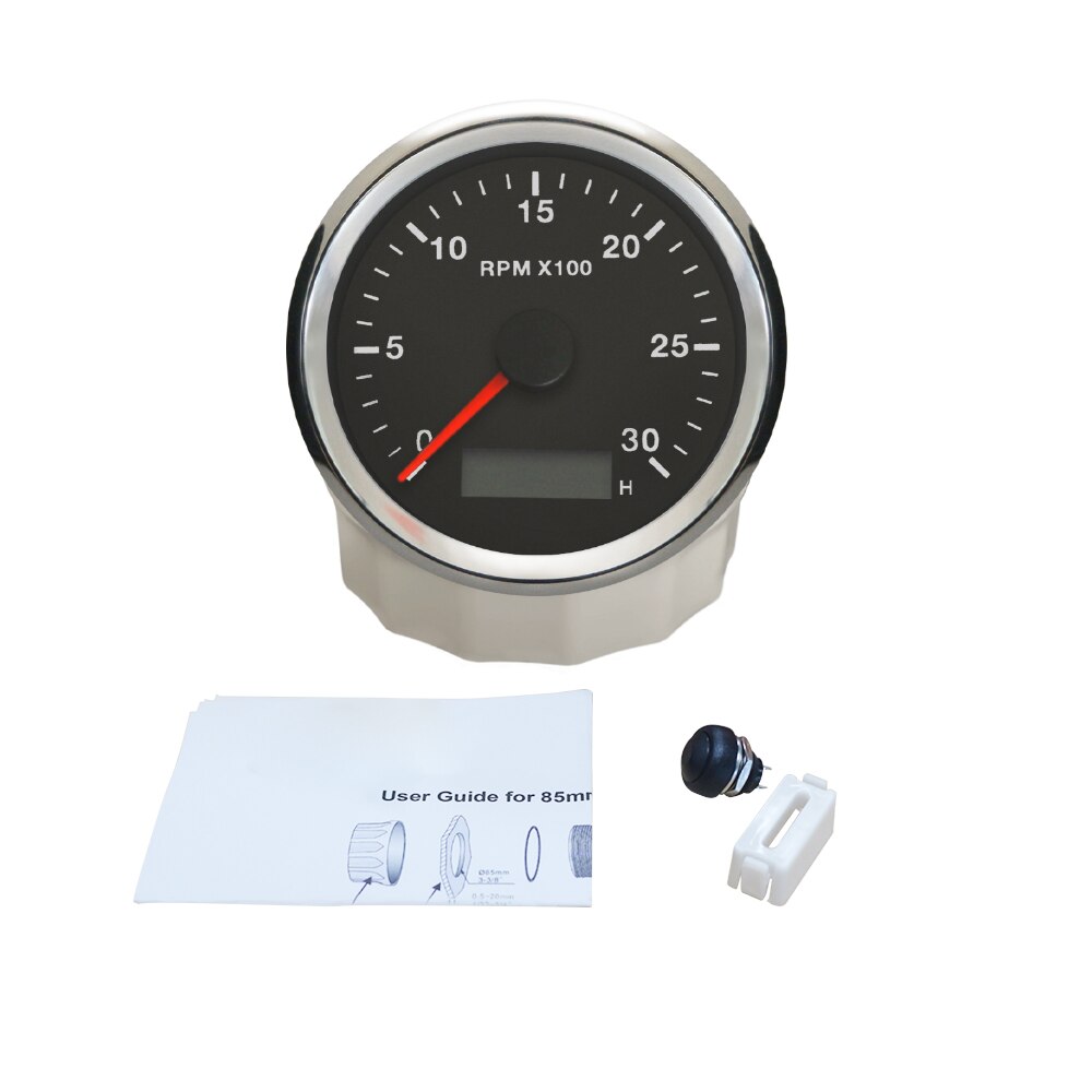 85mm Auto Marine Tachometer 3000/4000/8000/12000RPM Gauge with LED Hour Meter Adjustable 12V/24V with Red or Yellow Backlight