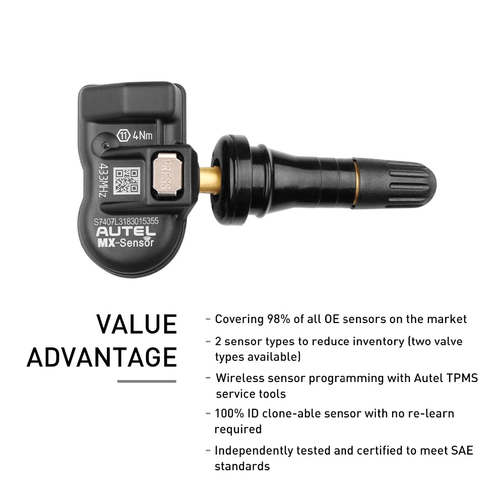 Autel Sensor Car Universal TPMS Tire Pressure Rubber Sensor Programmable 433MHz