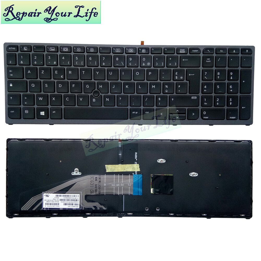 AZERTY Light laptop French keyboard For HP ZBOOK 15 G3 17 G3 G4 FR UK English with backlit Pointing original blue grey frame