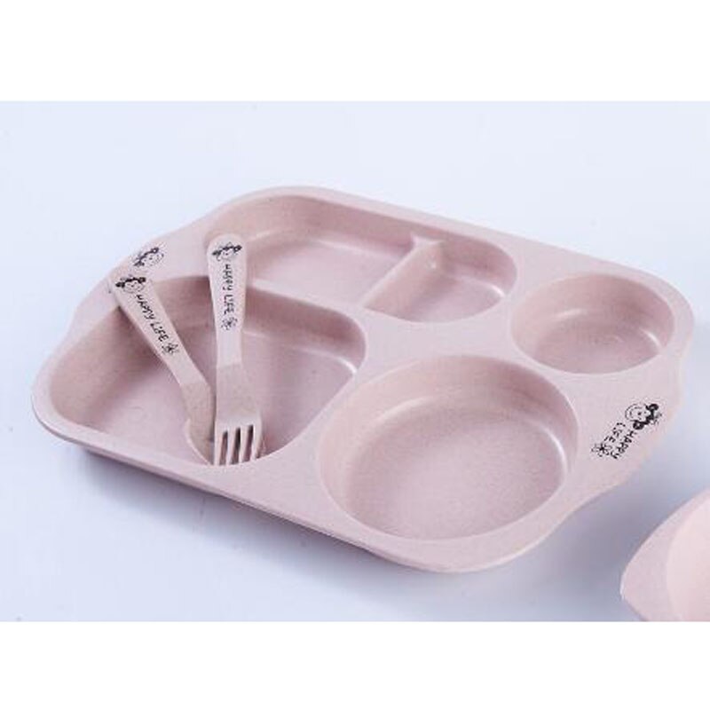 Cartoon Baby Dishes Wheat Fiber Sub-grid Plates Irregular Children Tableware For Infant Toddler Kids Feeding Utensils