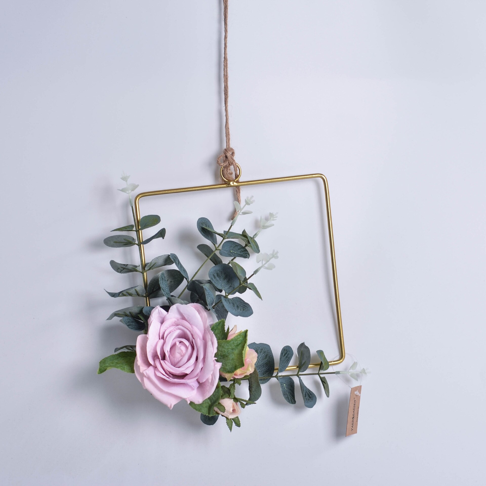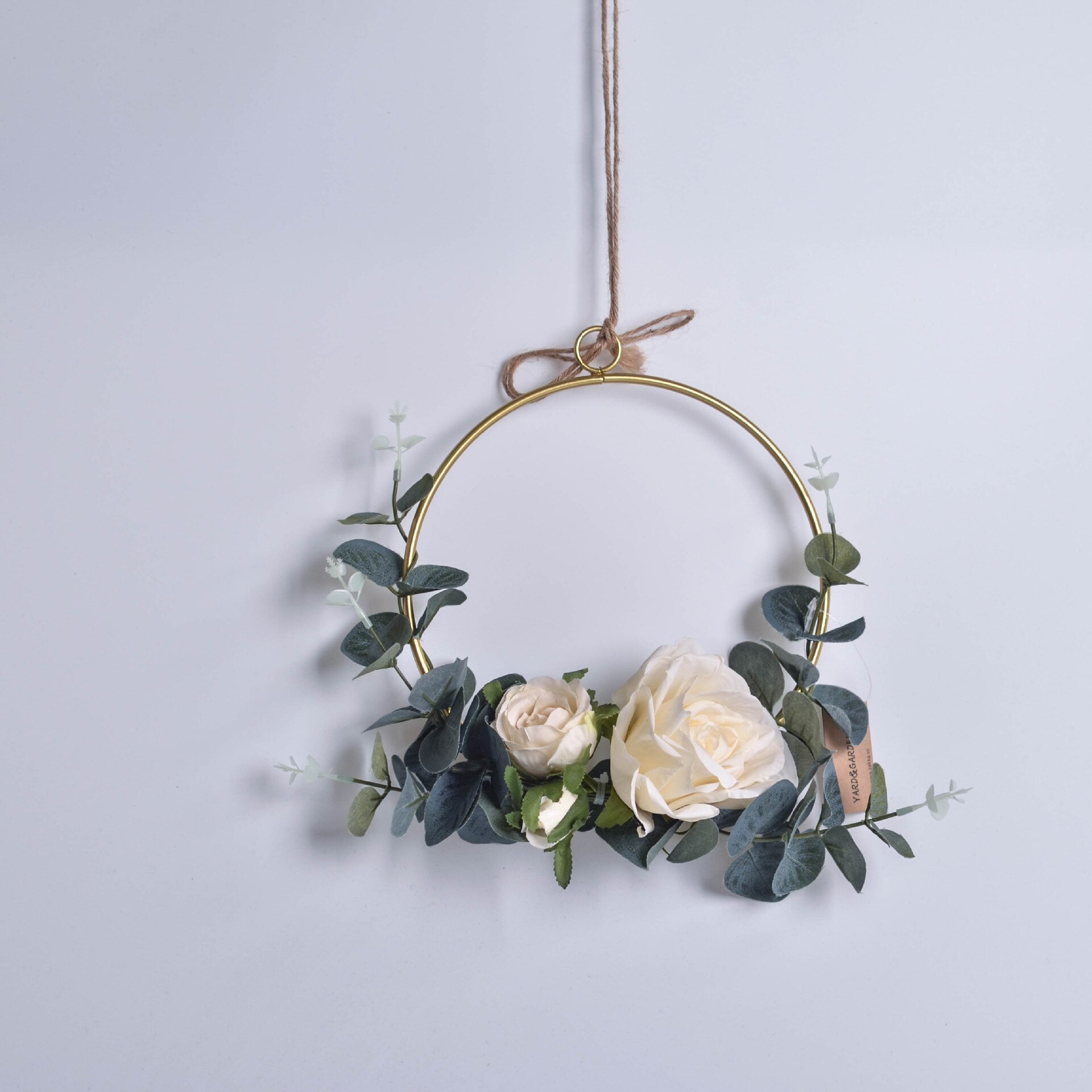 Cilected Geometric Metal Garland Home Hanging Artificial Rose Flower Ring Holder Wall Hoop Wreath Wall Hanging Decoration