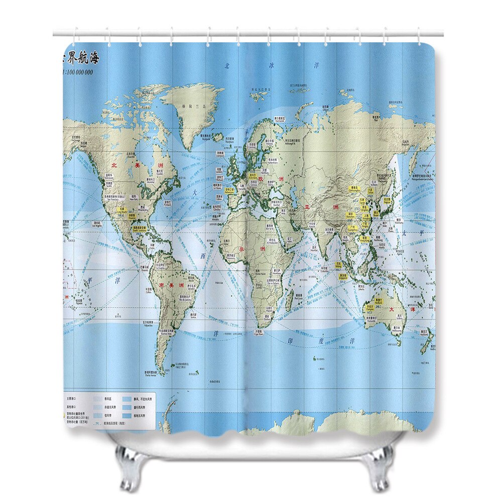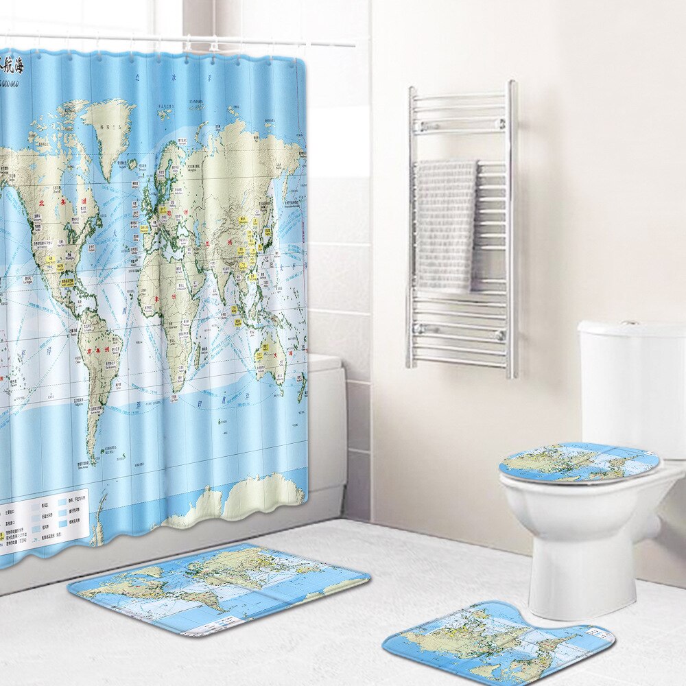 Classic World Map Pattern Shower Curtain Printing Bathroom Curtain Shower Wall-mounted Map Curtain World Map Shower Curtain
