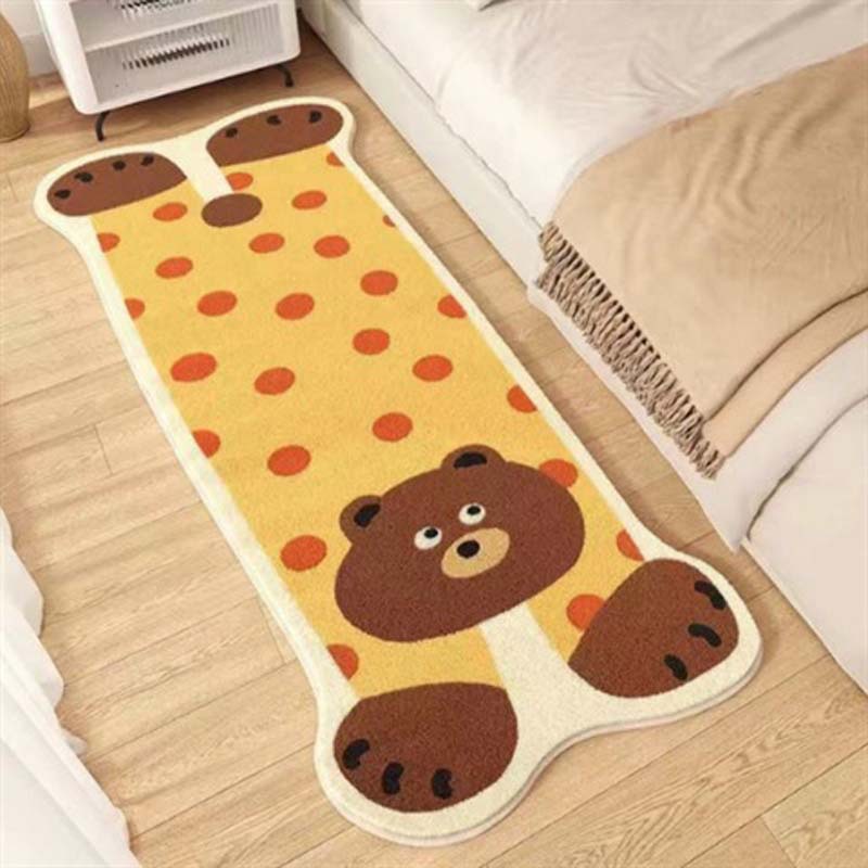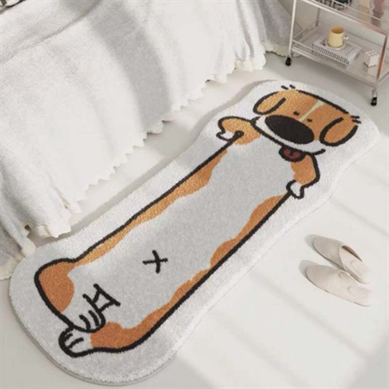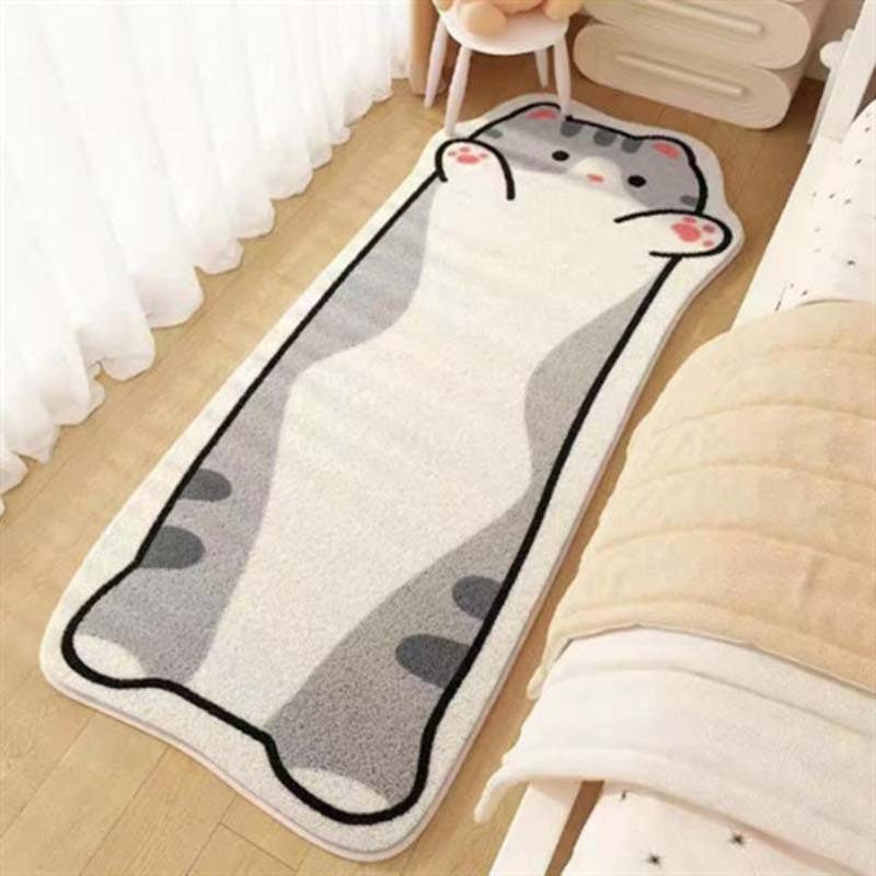 Cute Cat Faux Cashmere Bedside Carpet Cartoon Soft Anti-Slip Foot Rug for Bedroom Water Absorbing Wear-Resistant Home Floor Mat