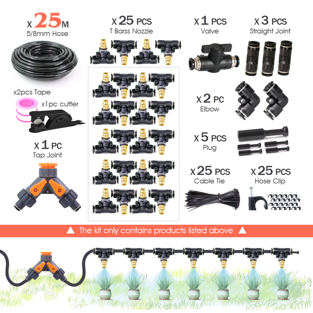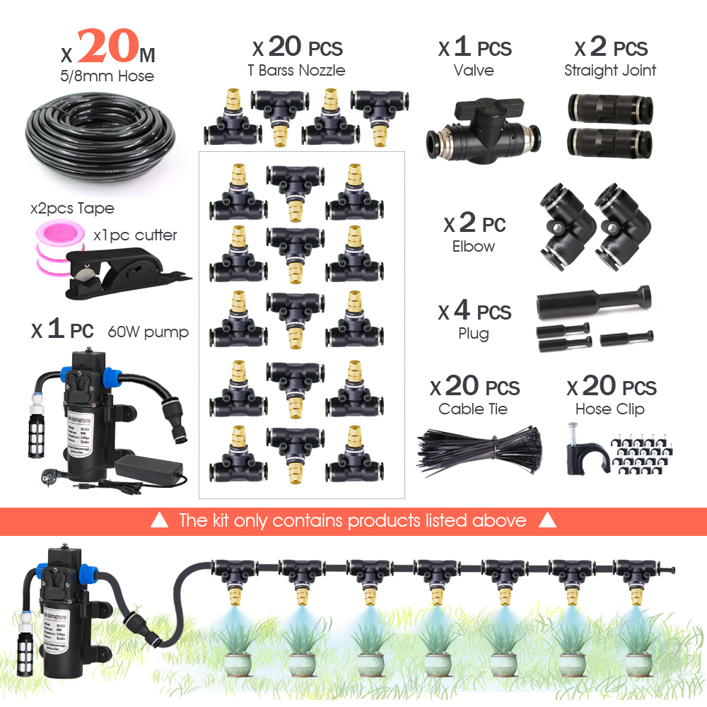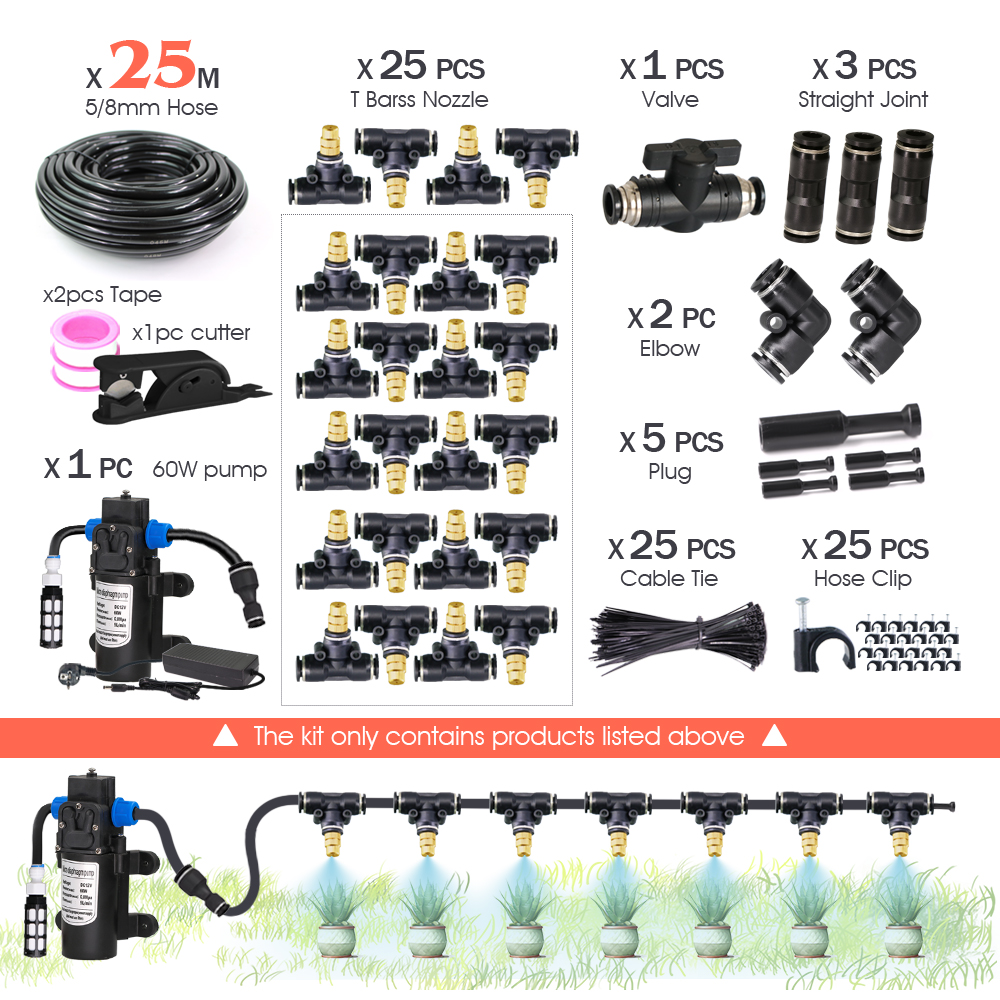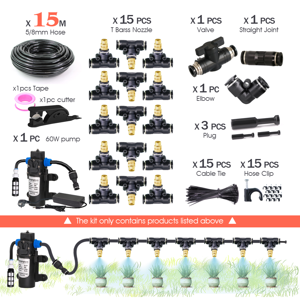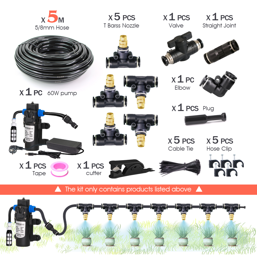 Garden DIY 8mm PE Hose Brass Nozzle Sprayer System Mist Sprinkler 45/60/80/100W Self-Priming Pump Automatic Atomized Irrigation