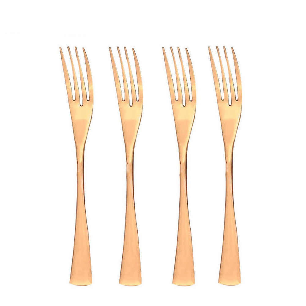 JANKNG 4 Pcs/Lot Dinner Fork Colorful Flatware Set 18/10 Stainless Steel Fork Cutlery Set for Dinner Rose Gold Dinnerware