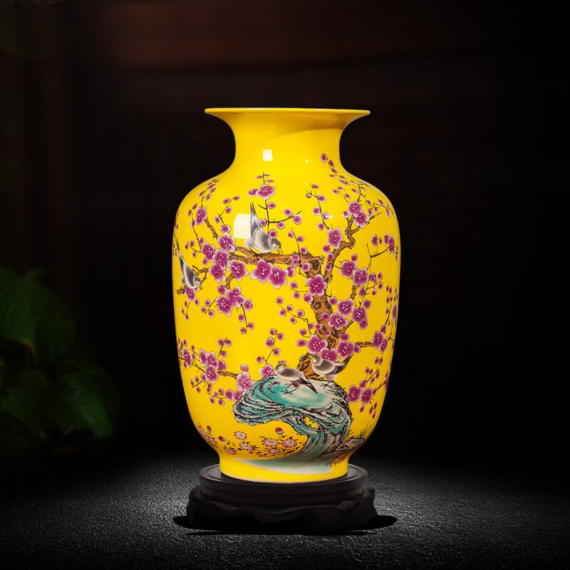 Jingdezhen ceramic yellow vase decoration Chinese classical living room TV cabinet home decoration flower arranging vase