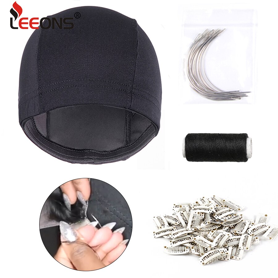 Leeons Weaving Cap Wig Making Tools Hair Extensions Clip/9Cm-C Curved Needles/Weaving Thread For Wig Making Hair Net Wig Cap