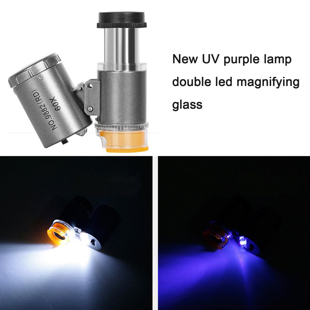 Magnifier UV Purple Light Double LED Magnifying Glass Adjustable Portable Microscope Identification Magnifying Glass