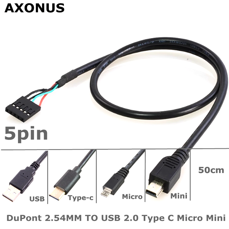 Micro 5P Mini USB Type-C male 2.0 male to 2.54mm 5-inch PCB motherboard DuPont cable 0.5 meters apart