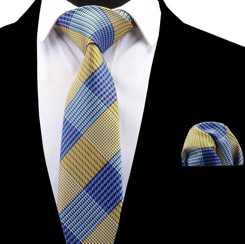 RBOCOTT Plaid Tie Set For Men Necktie Handkerchief Men's Classic Striped Neck Tie 8cm Red Blue Brown For Wedding