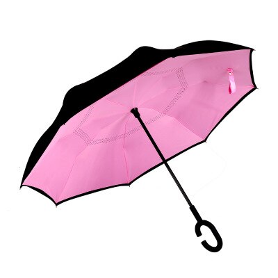 Reverse Umbrellas Folding Double Layer Inverted C Hand Holder Stand Sun Rain Windproof Rolling Over Umbrella For Women