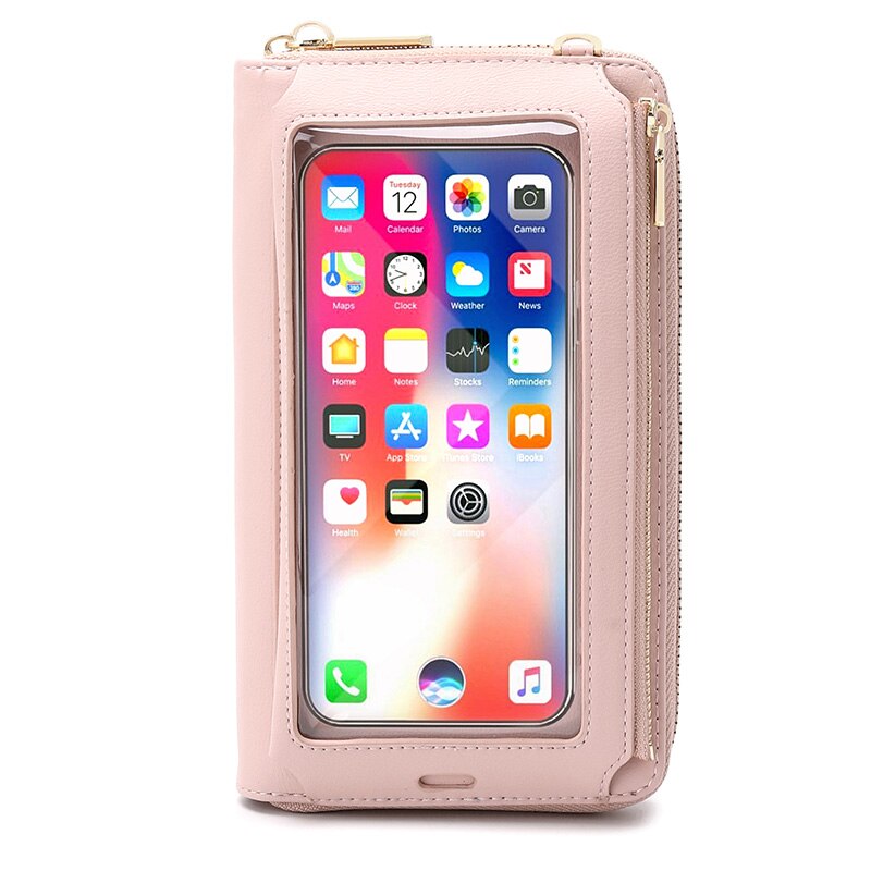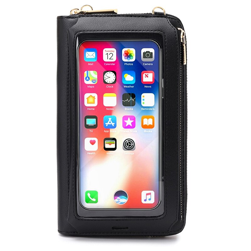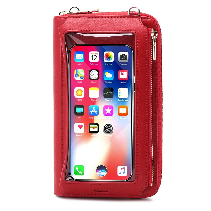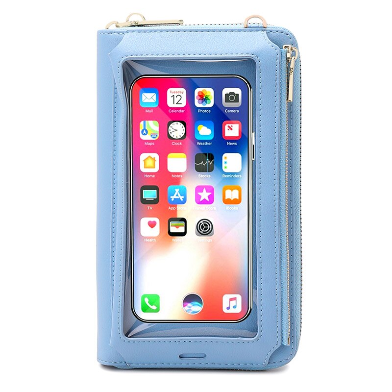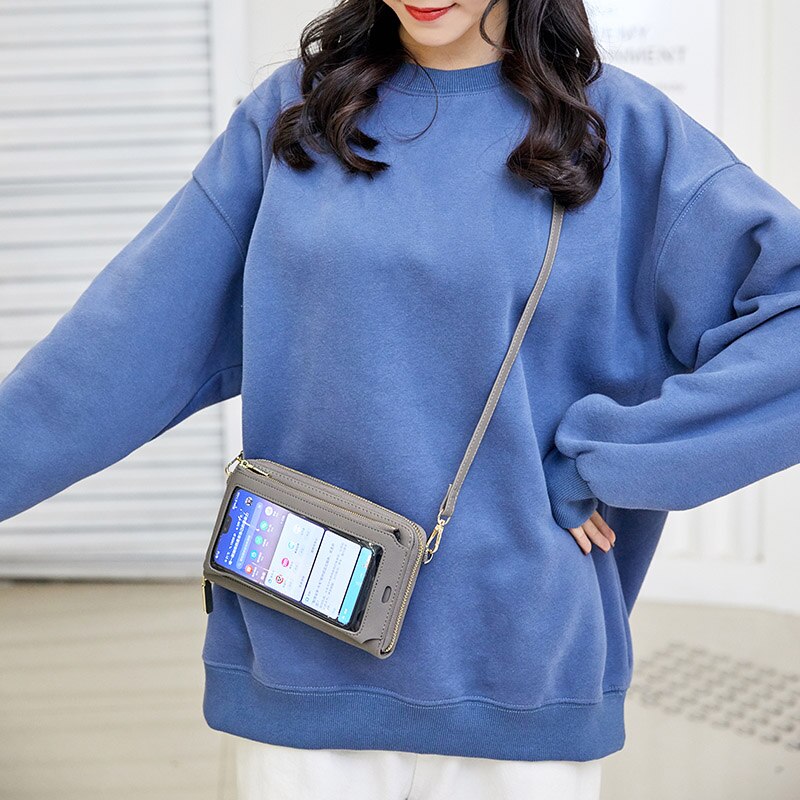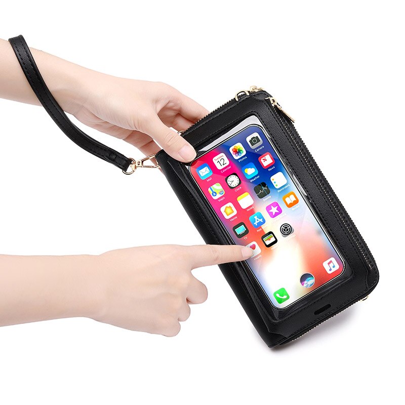 RFID Transparent Touchable Phone Pocket Women Shoulder Bags PU Leather Ladies Small Crossbody Bags Female Clutch Wallet