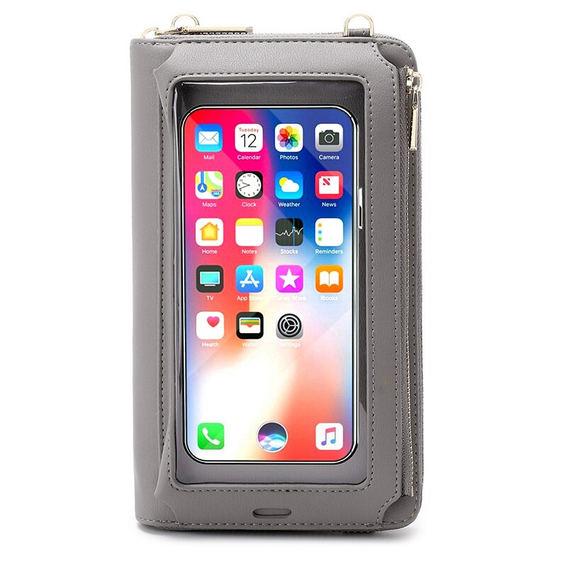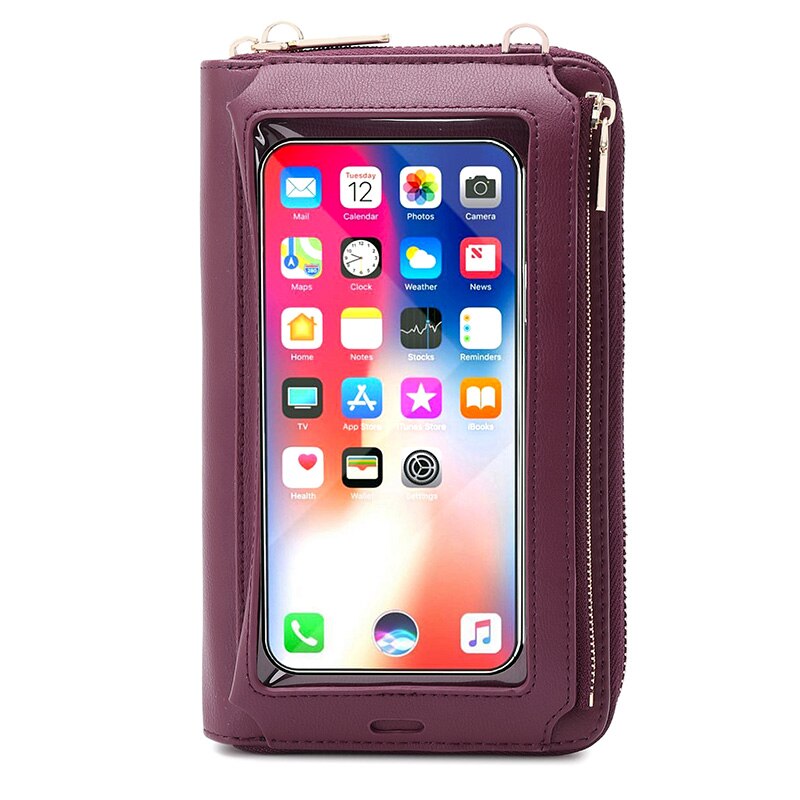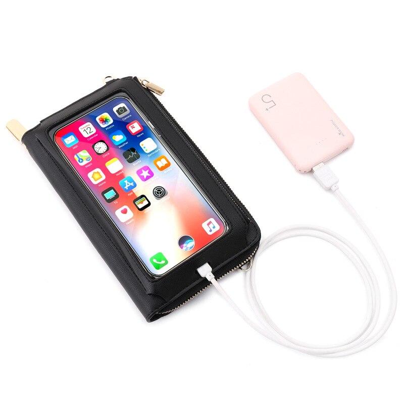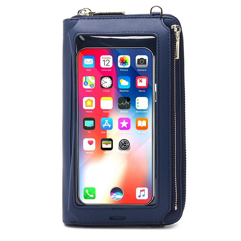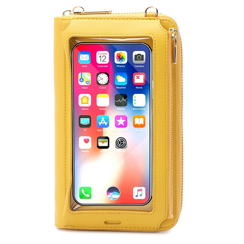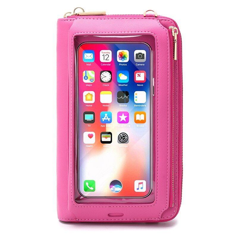 RFID Transparent Touchable Phone Pocket Women Shoulder Bags PU Leather Ladies Small Crossbody Bags Female Clutch Wallet