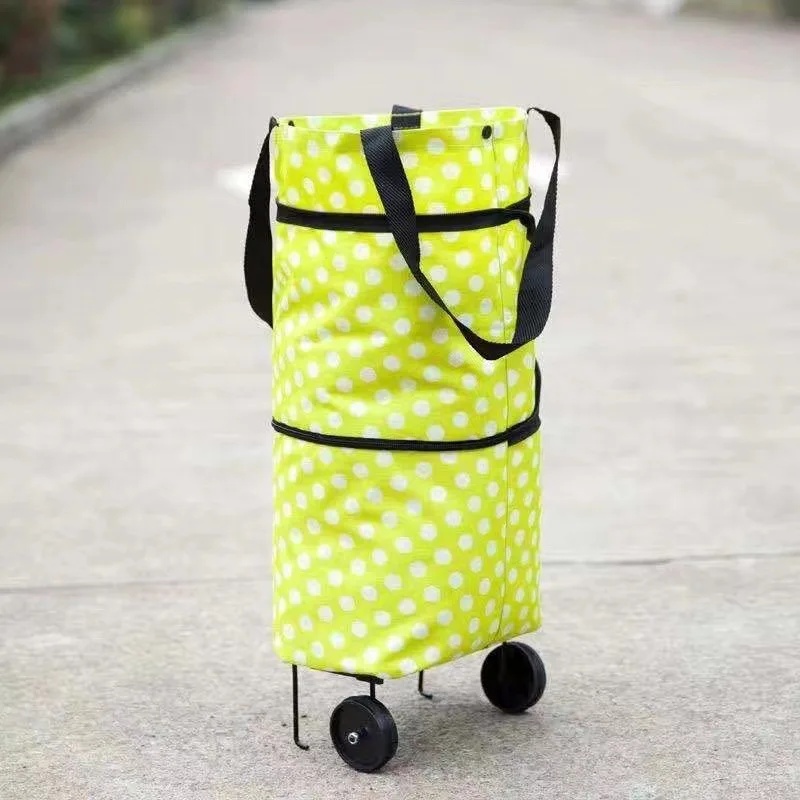 Shopping Bag with Wheels Foldable Hand Pull Extendable Vegetable Buying Car Casual Polyester Fiber Home Use Logo Addable