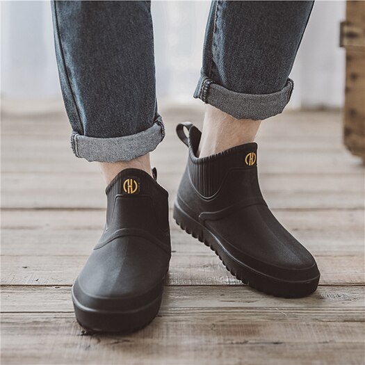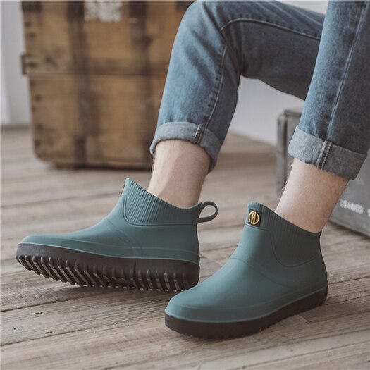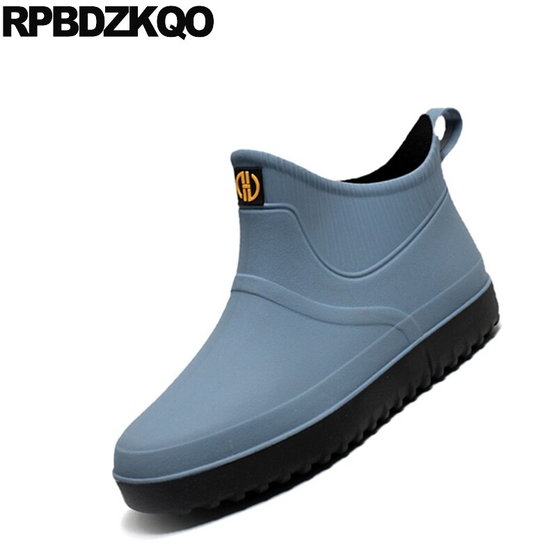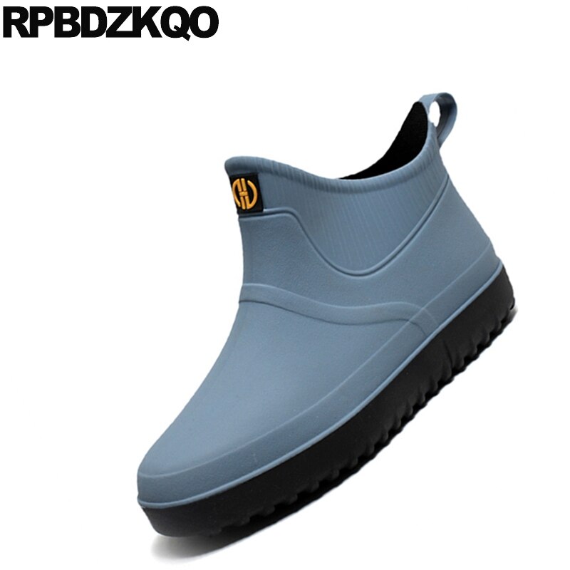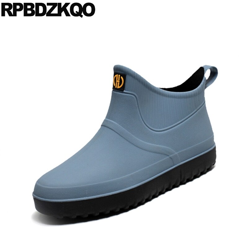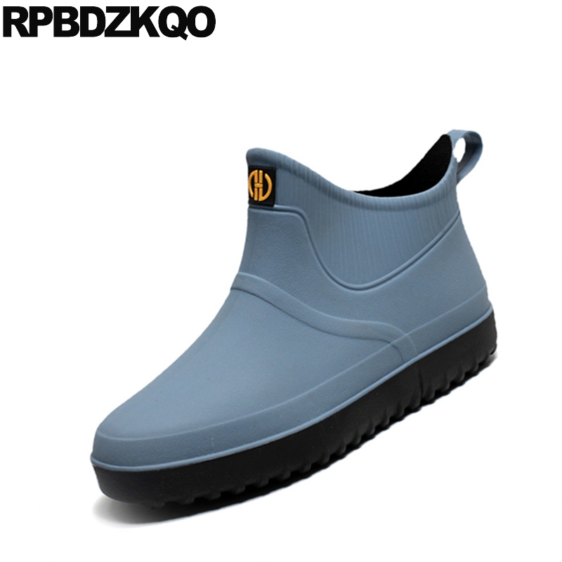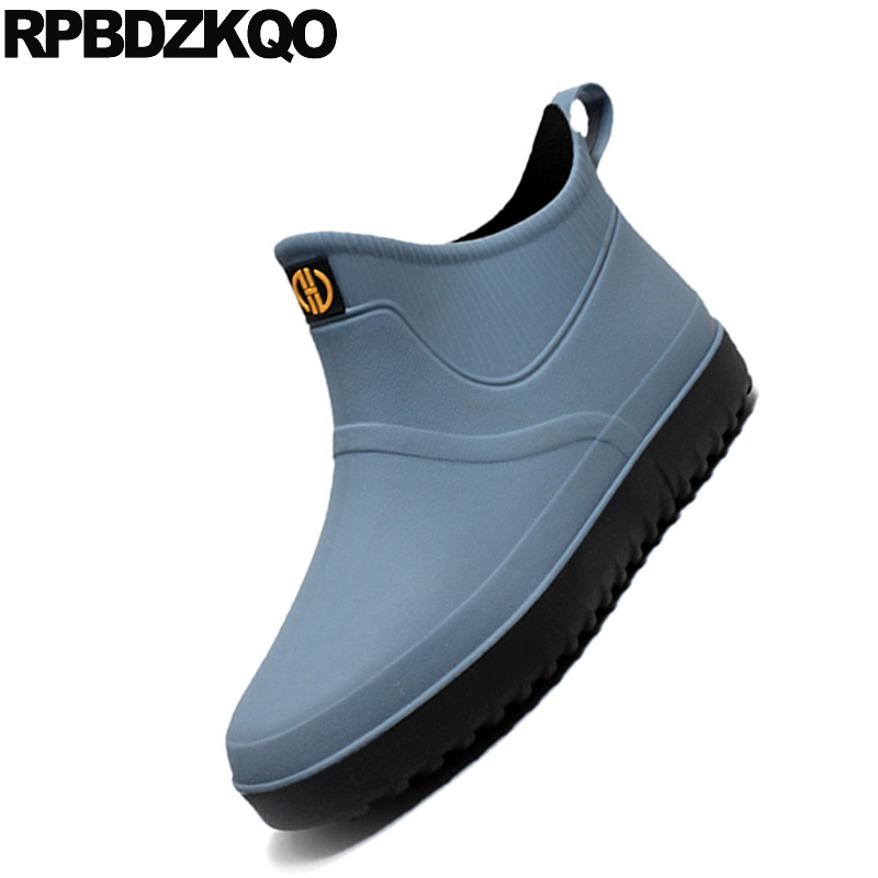 short rainboots slip on shoes high top rain autumn rubber fishing boots men blue booties waterproof flat green