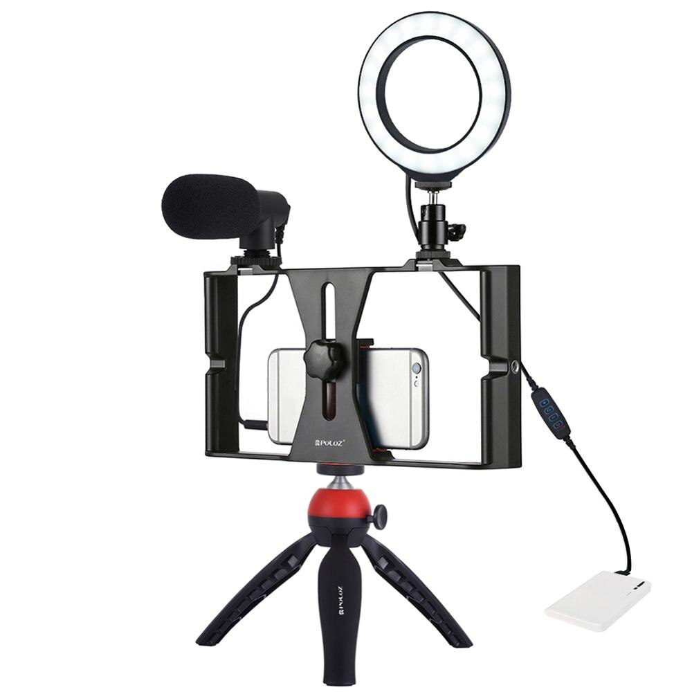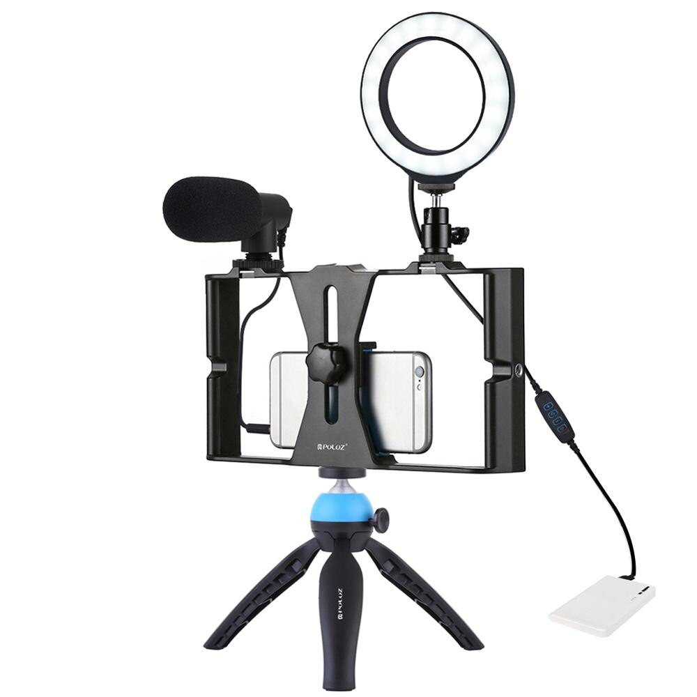Smartphone Vlogging Rig Set Kit LED Ring Light+Microphone+Tripod Phone Stand Mount for Phones/Camera Live Broadcast
