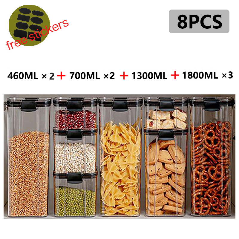 Stackable Kitchen Sealed Jar, Plastic Food Storage Box, Multigrain Tank Bottle, Dried Fruit Tea Containers, 460-1800ml Sets