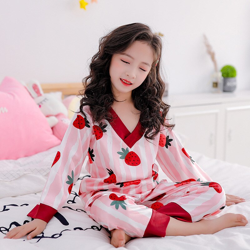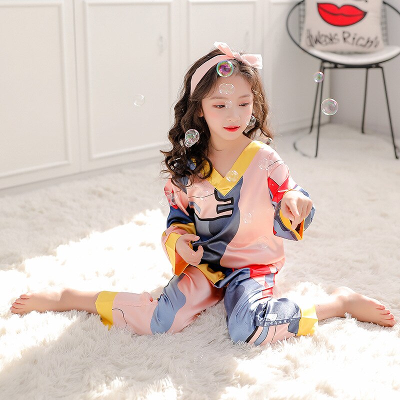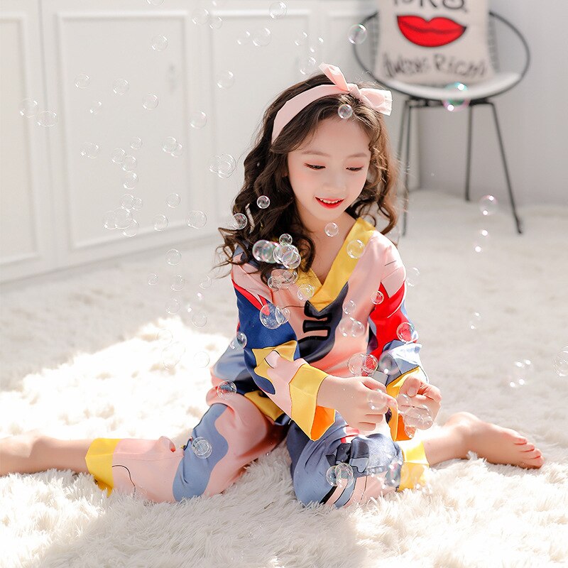 Toddler Girl Silk Pajamas Kids Clothes Girls 4 To 12 14 Years Baby Christmas Pajamas Autumn Long Sleeve Japanese Style suits