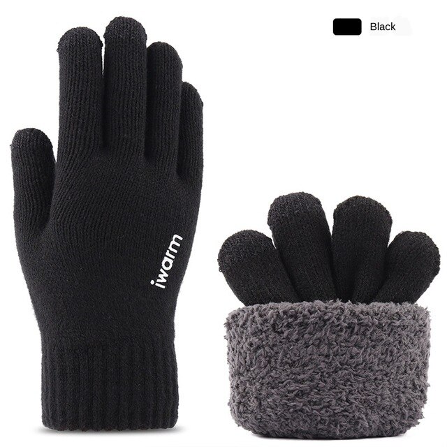 Touch Screen Gloves Men's Jacquard Plus Velvet Winter Thick Knitted Warm Woolen Gloves