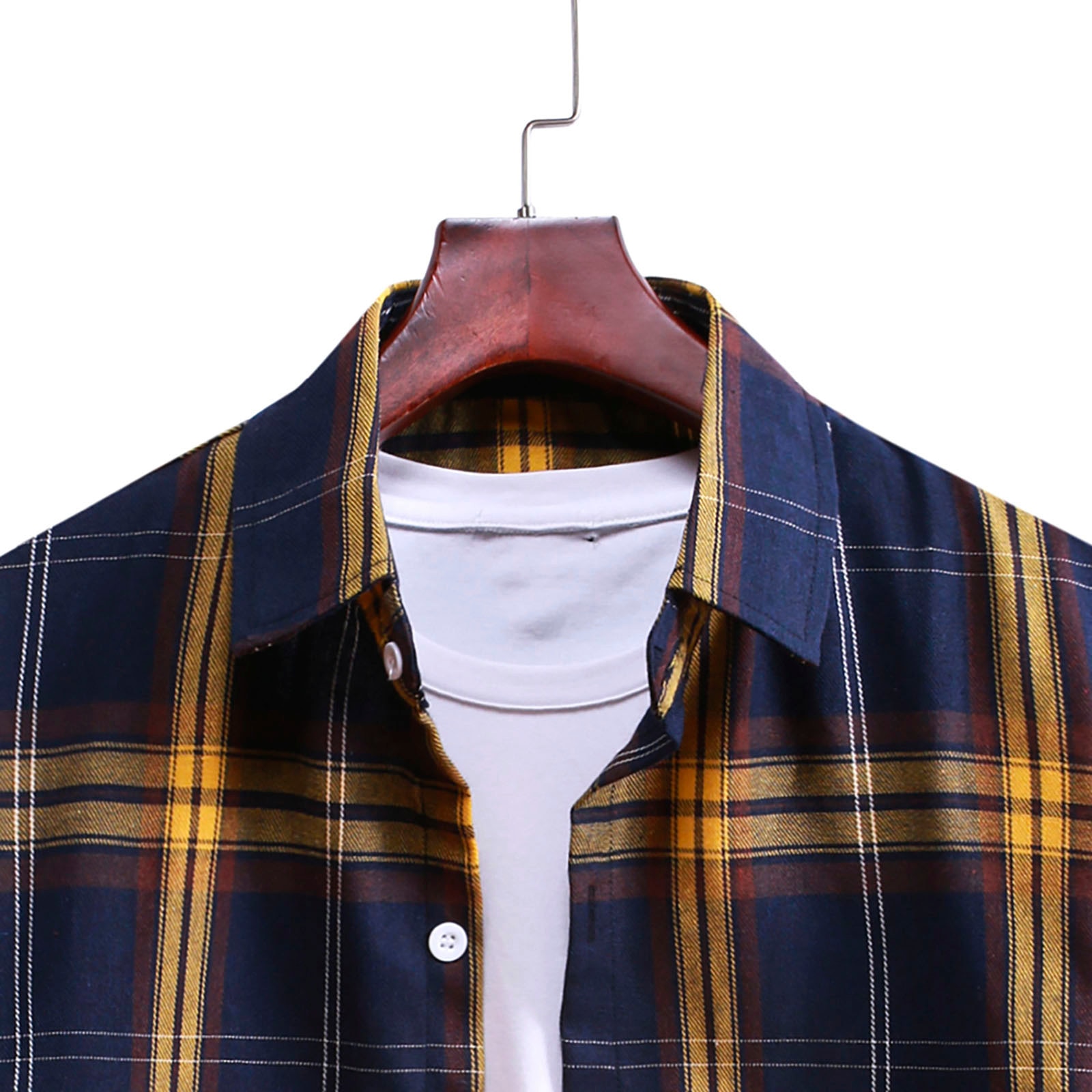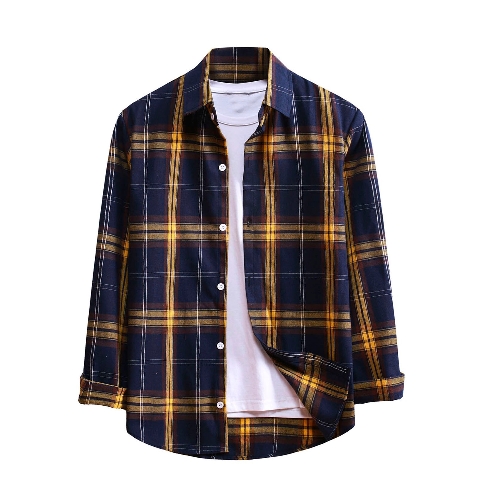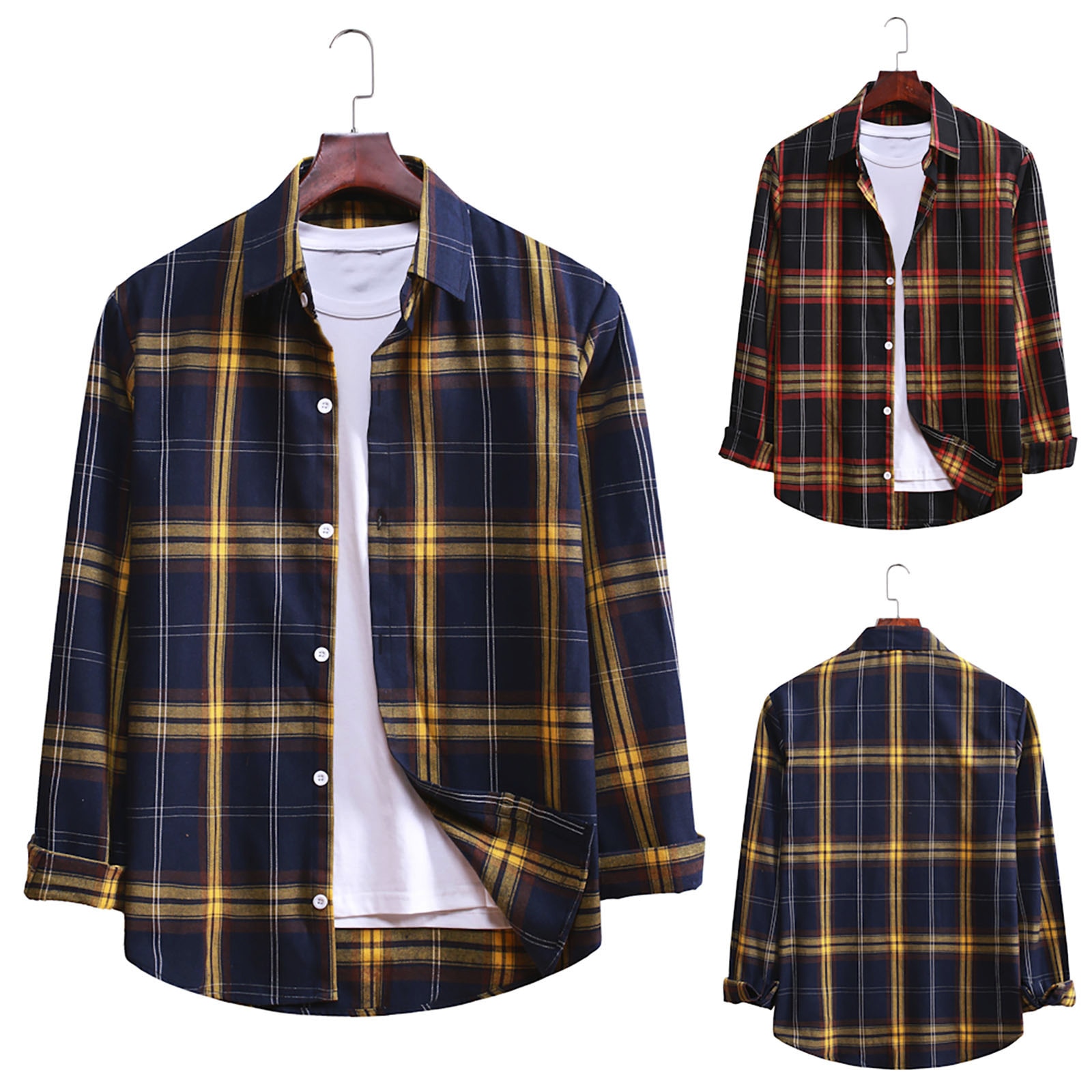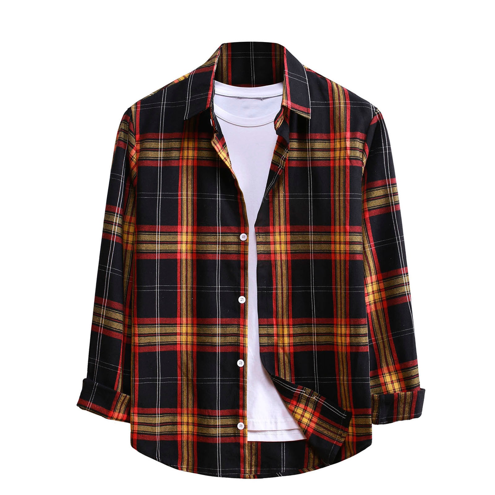 Trendy Men's Long-sleeved Shirt, Plaid Printed Men's Button Lapel All-match Shirt, Street Outdoor Men's Clothing#g30