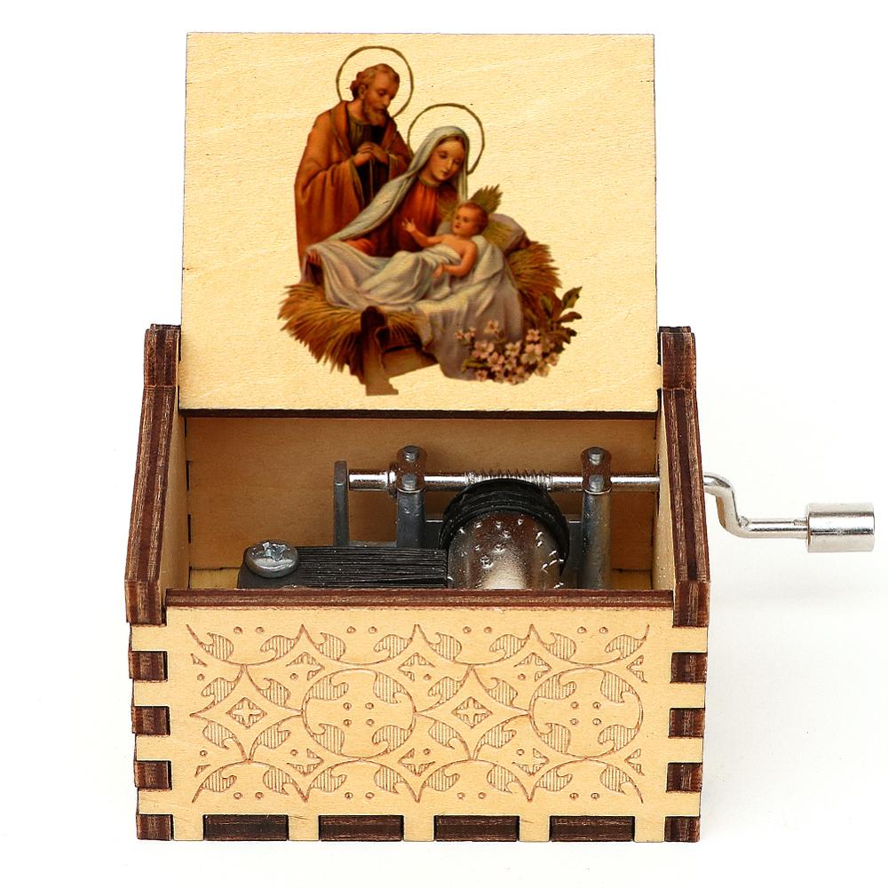 Vintage Engraved Music Box Wooden Musical Box 3D Printed Amazing Grace Theme Music Box Christmas Birthday