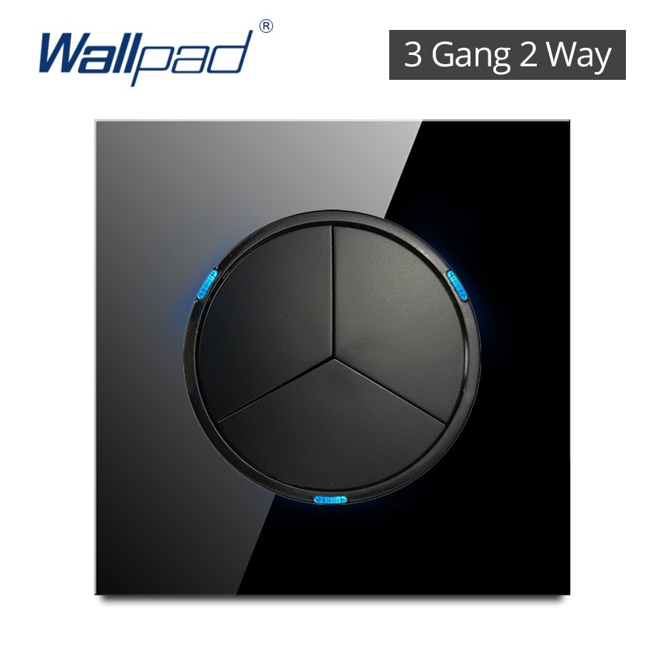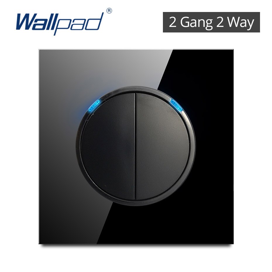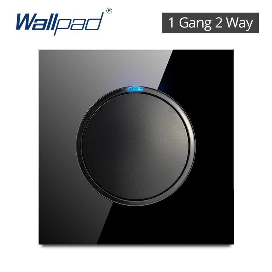 Wallpad Random Click Push Button Wall Light Switch With LED Indicator Socket Black Tempered Glass Panel For Home