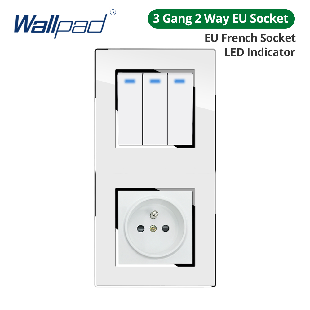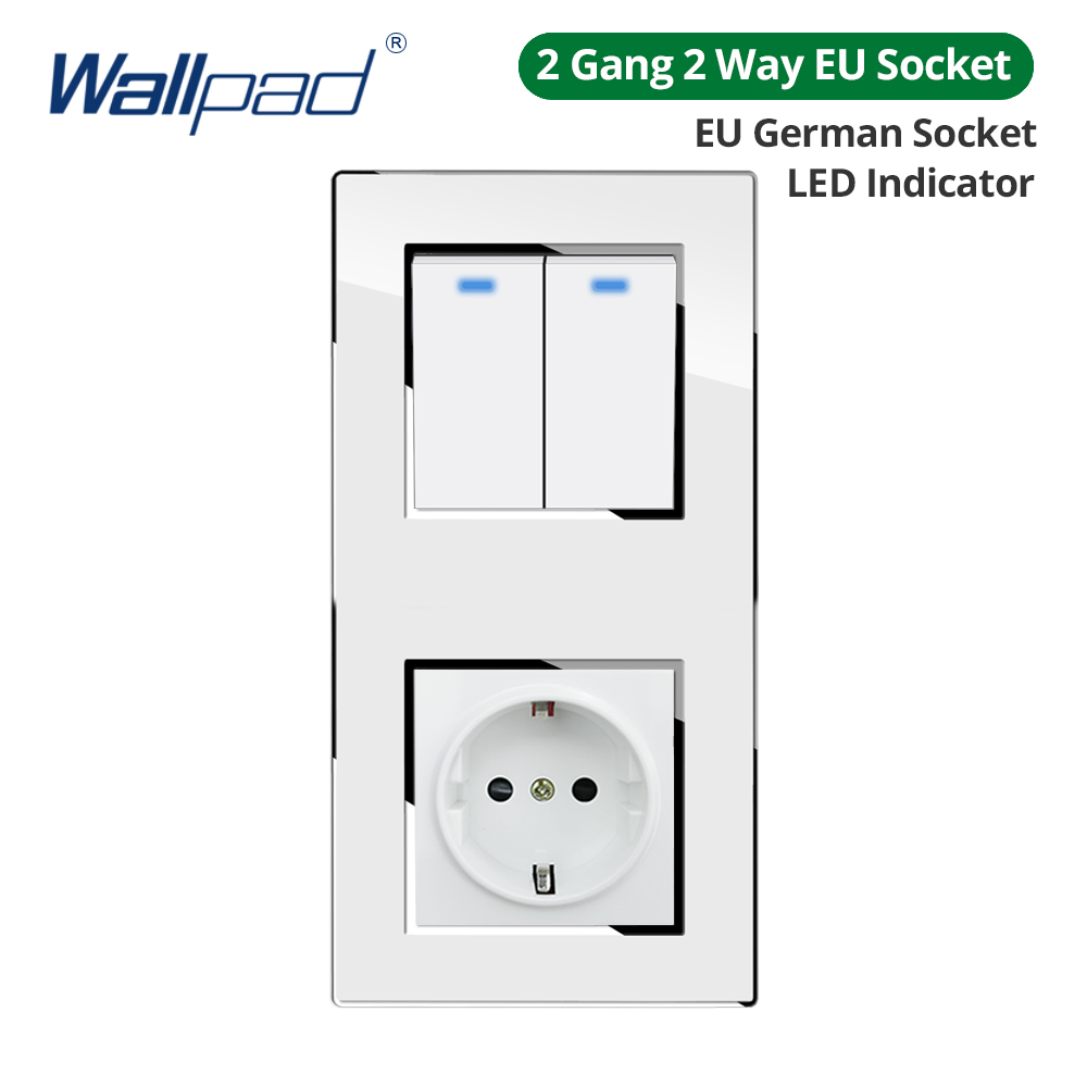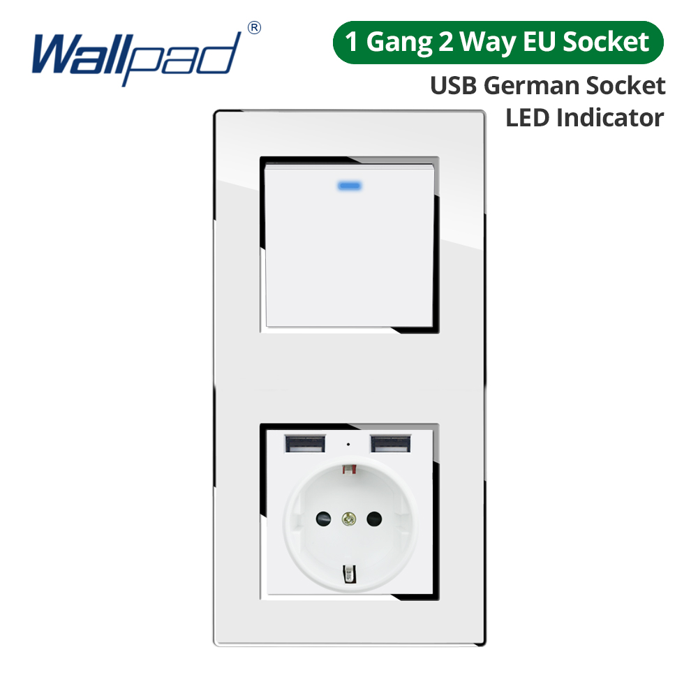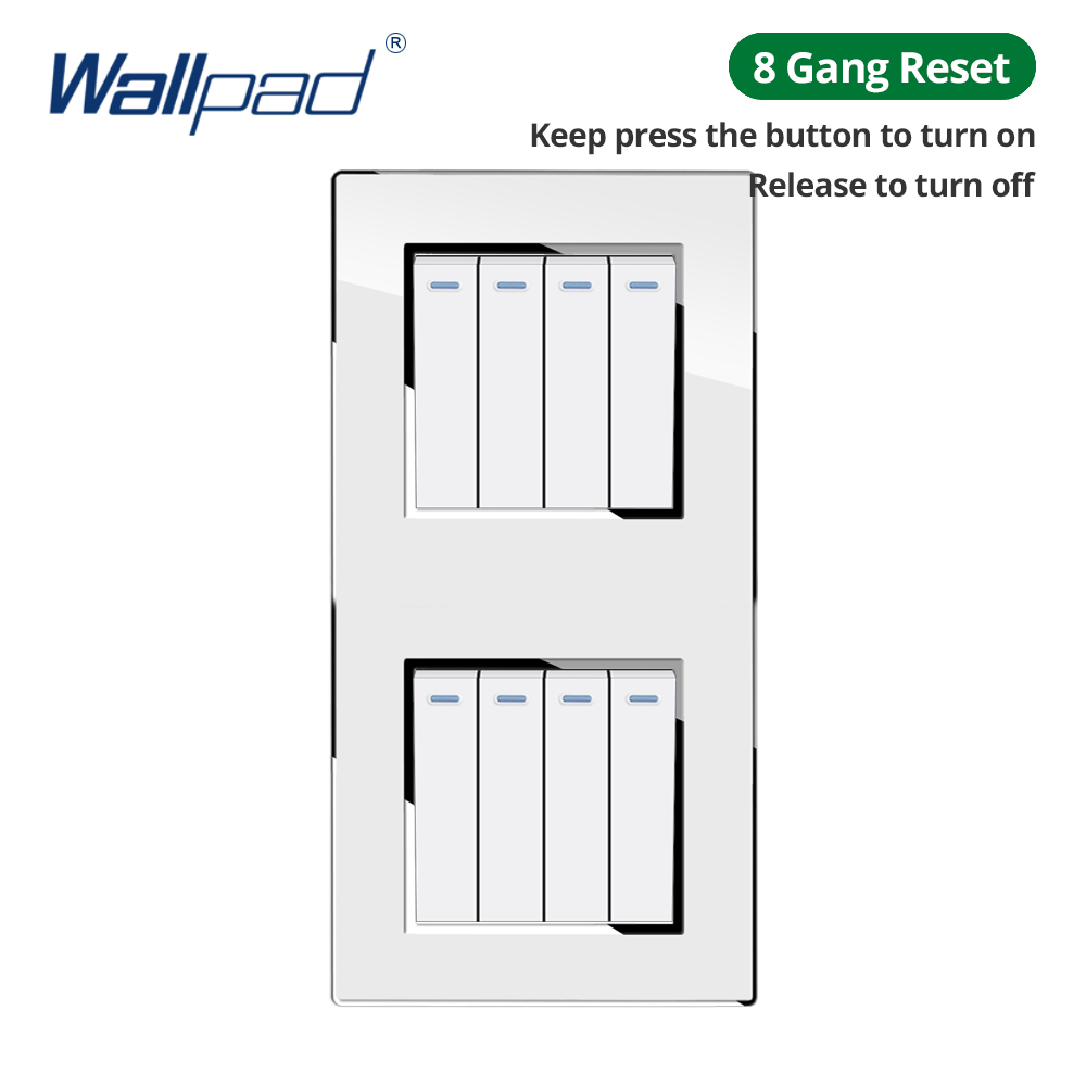 Wallpad Vertical Install 86*172mm White Acrylic Panel Wall Light Switch USB Charge EU Socket Outlet 4 5 6 7 8 Gang 2 Way Reset