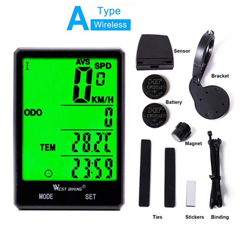 WEST BIKING Portable Bicycle Computer Wireless Wired Backlight Digital Speedometer Bike Computer Ultralight Bicycle Accessories