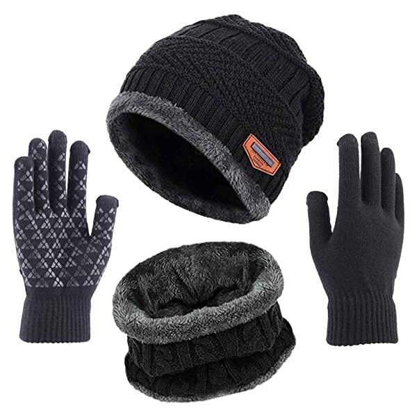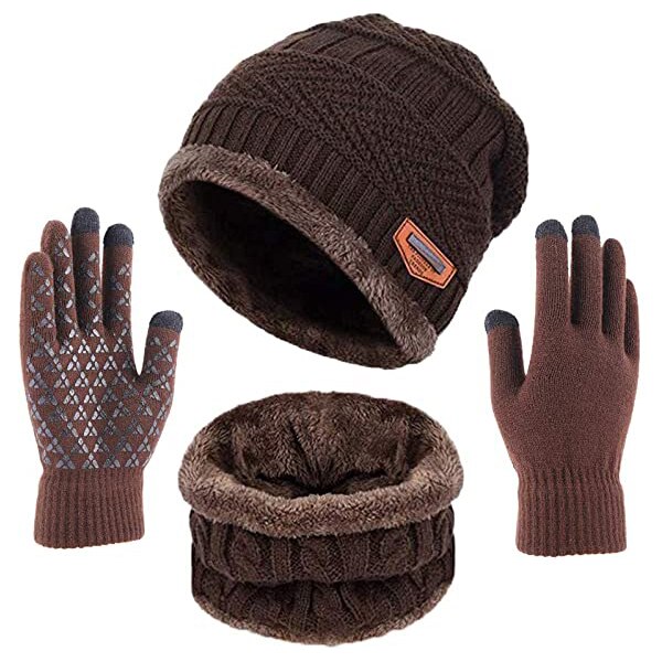 Winter Warm Beanie Hat Scarf Gloves Set Unisex Winter Warm Knitted Beanie Hat Neck Glove for Men Women XRQ88